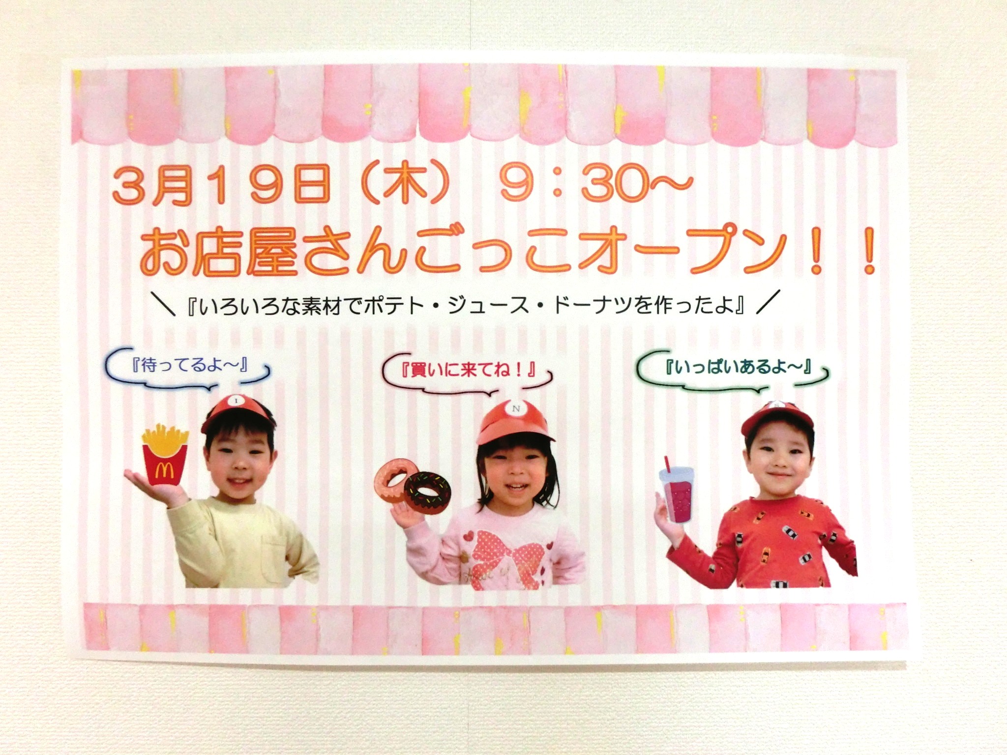 今日は、ぱんだ組さんによる『お店屋さんごっこ』を、みんなで楽しみました♪ 2歳児