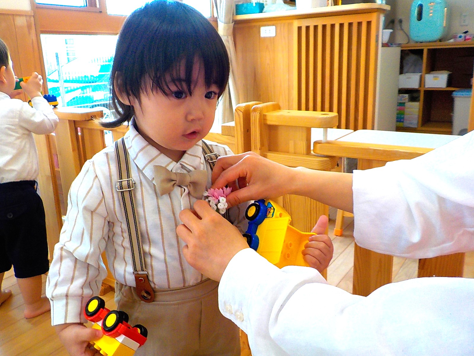 今日は、4月から転園する子の送る会でした。 保護者の方に見守られるなか、普段とは