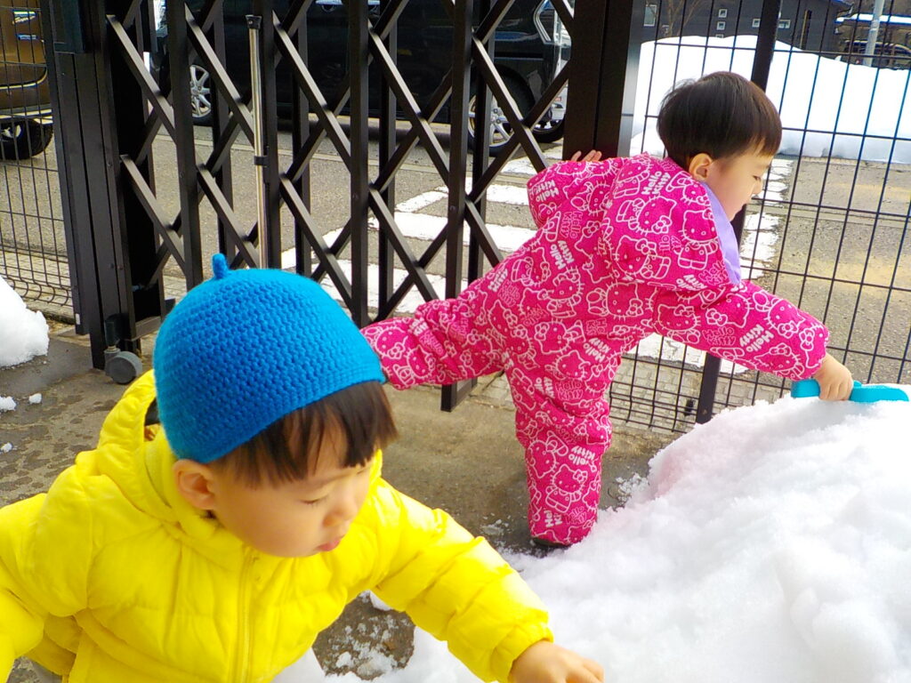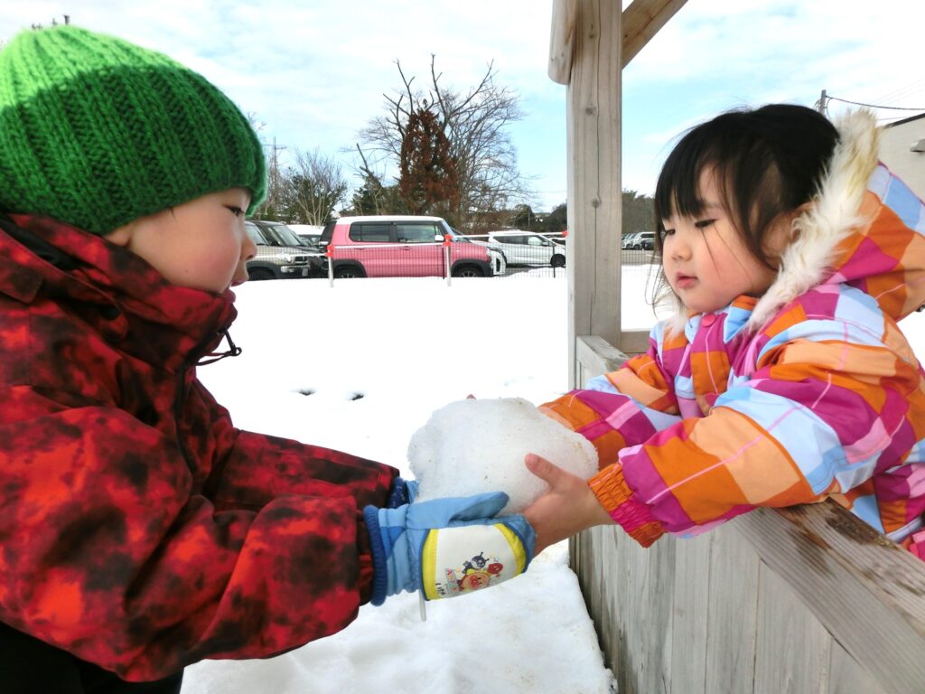 今日はお天気が良かったので、ぱんだ組さんはさくら保育園の園庭で、うさぎ組さんはベランダで雪あそびをしました❣