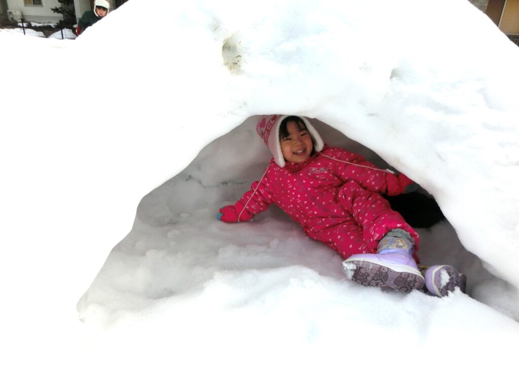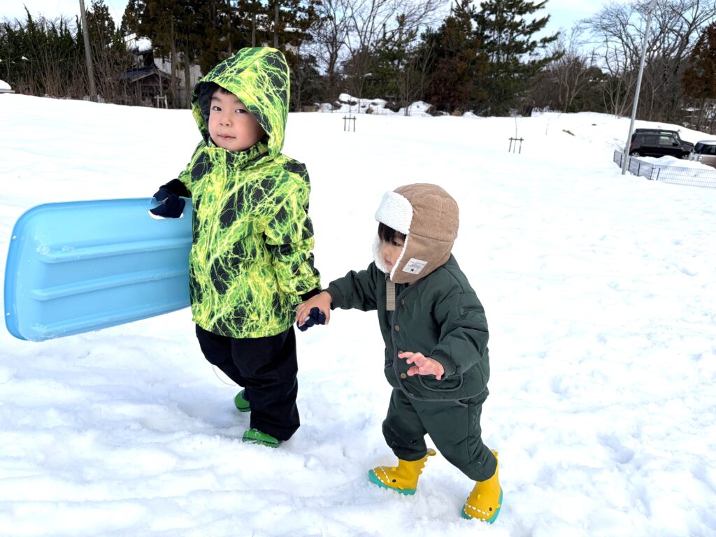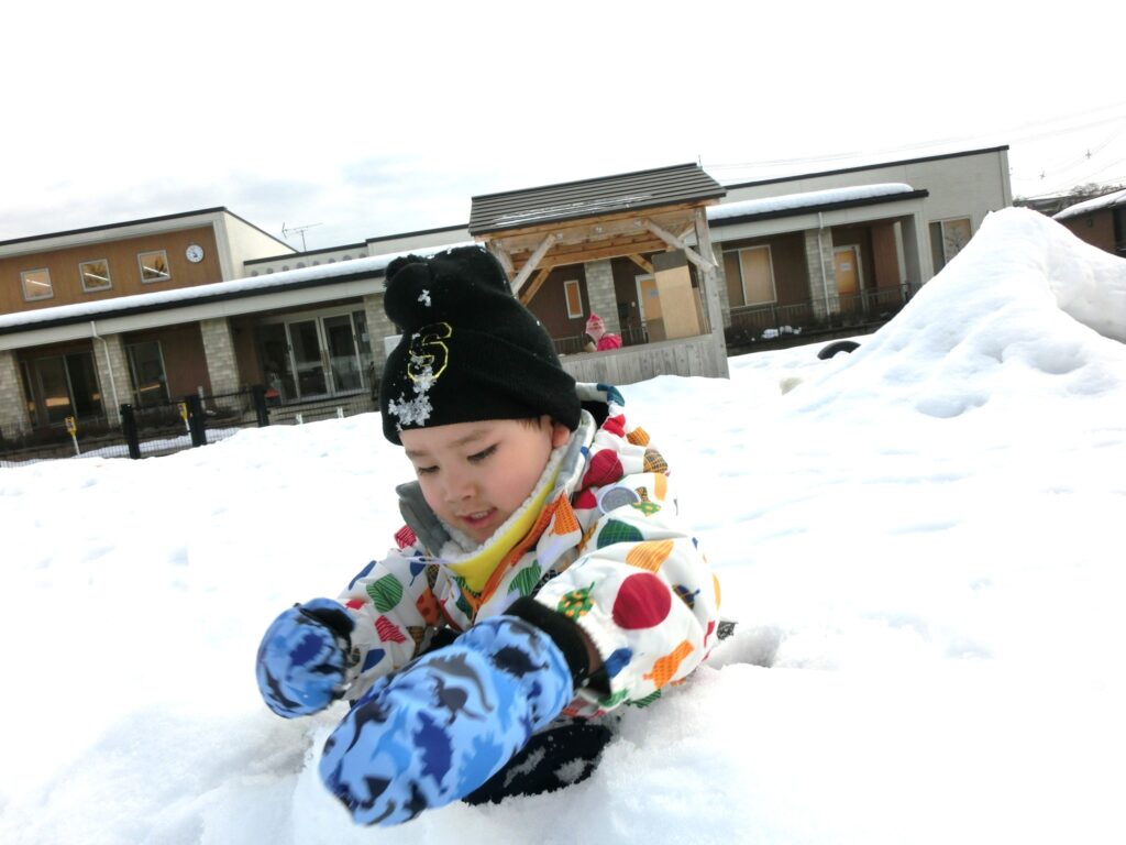 ぱんだ組さんは、さくら保育園のお友だちと一緒にそり滑りやかまくらに入ったりして、さくら保育園のゲレンデを満喫していました♪